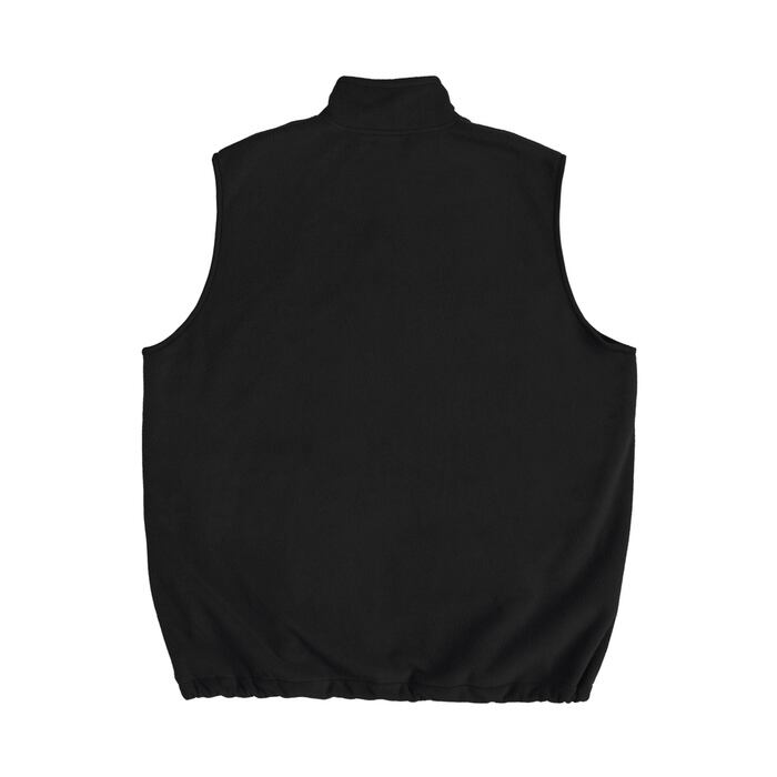 ふんわりと柔らかく、保温性に優れたフリース素材を使用したスタンドカラーベスト。